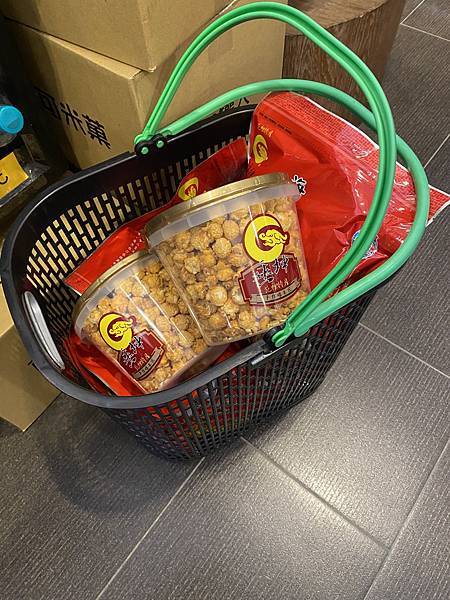 門市內空間本來就不大~擺滿滿的商品加上絡繹不絕的人潮,更顯得擁擠了~因為很多餅乾類零嘴都是充氣大包裝避免壓壞,所以店內提供「洗衣籃」讓客人充當購物籃,不論買多買少,整籃提起來結帳感覺就是很澎拜~^^"