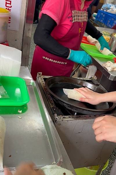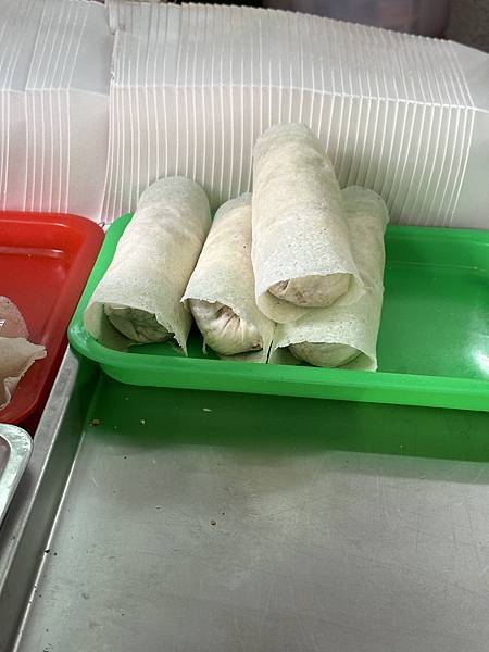 金得春捲其實平日生意就不錯,節日就更不用說了~冷凍春捲己售完,現場購買一人限30捲。店裡人手很多,包春捲速度是有練過的快~店員會管理客人排隊順序、先跟還在排隊的客人點餐,非常有秩序;因此雖然隊伍很長,貓編大概排半小時就買到了,沒有想像中的久。最特別的是,這邊的春捲可以「客製化」的喔!花生糖粉可以指定超甜(12分糖)、全糖(10分糖)、少糖(8分糖),半糖(5分糖)、微糖(3分糖)、微微糖(1分糖)、無糖(花生粉),餡料則有高麗菜、蝦子、豆乾、蛋絲、皇帝豆、豬肉、花生糖粉、香菜末、蒜泥,都有看板清楚標示(可惜這次人太多沒拍到😅),豬肉可以選要五花肉還是瘦肉,不吃的食材都能事先跟店家說,非常甘心~