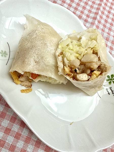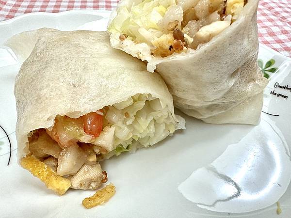 開吃囉~!!微微煎過的餅皮吃起來不「韌」、有點酥酥的好好吃😋高麗菜、皇帝豆、蝦仁、蛋絲、滷豬肉等數種內餡,吃起來濕潤不澀、又不油膩,這是不愛吃乾餅皮的的貓編最最愛的特色了~🤤滷豬肉香味帶起整個春捲的靈魂,搭配花生糖粉融合所有食材的美味、讓整體味道變得非常順口好吃~如果吃東西不會胖,貓編肯定一口氣吃他兩捲XD~雖然花生糖粉有些甜了點,不知道是不是因為沒指定,所以自動使用全糖的量,但還在能接受的甜度範圍內~可惜金得離家裡有點遠,不然這樣清爽的口感,夏天當作正餐吃肯定很讚🤤~