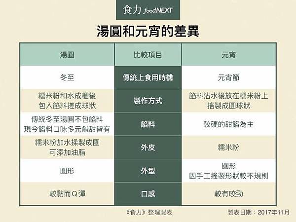 總結一下,在製作方式上【湯圓】是「搓」出來的,傳統湯圓不包餡,而現今的湯圓因應時代變遷,口味逐漸多元、內餡鹹甜都有,是【冬至】專屬美食~