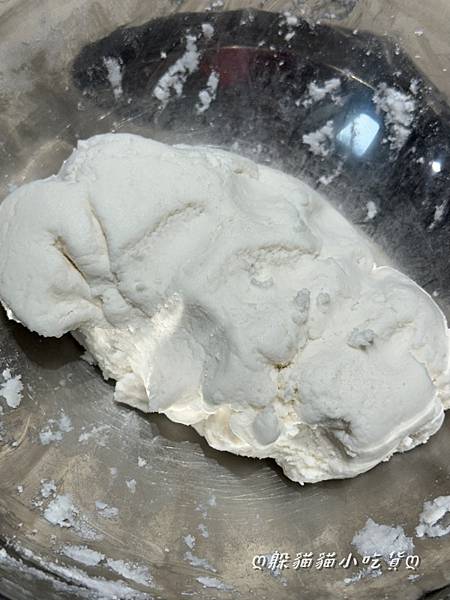 步驟一:碗中倒入糯米粉、水攪拌搓揉成麵糰