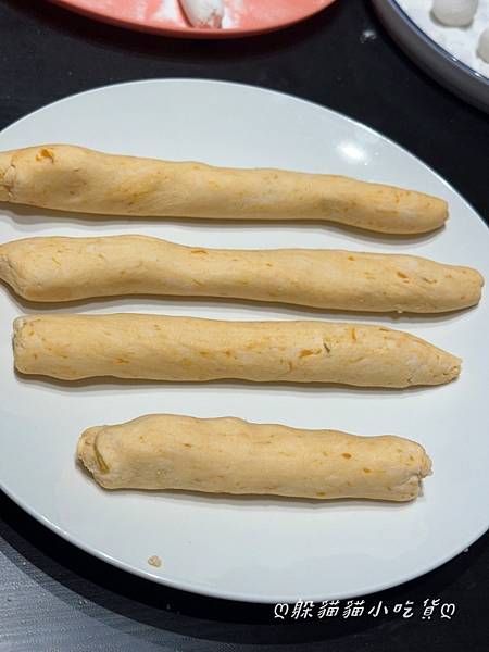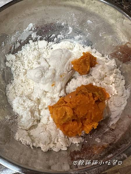 要注意地瓜含有水份,多放些糯米粉一起揉才不會黏手喔!