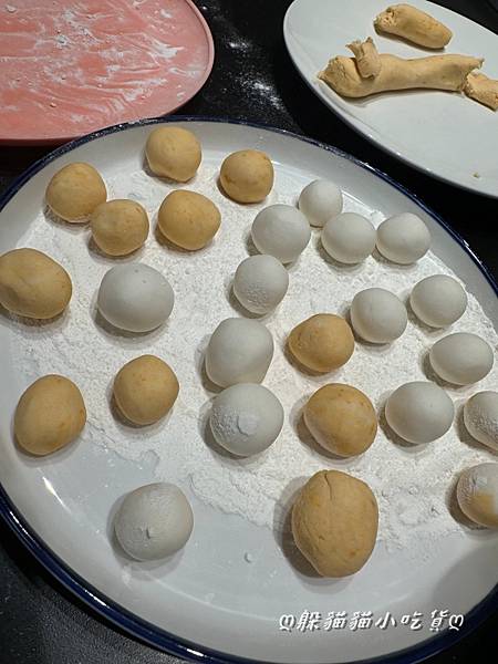 步驟二:將麵糰搓成長條狀,每次捏一小塊搓圓,太黏手可以在手上沾點糯米粉比較好搓