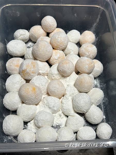 步驟三:把小湯圓放在舖滿糯米粉的盤子上,搖晃盤子讓湯圓滾成小雪球,均勻的沾上糯米粉才不會互黏